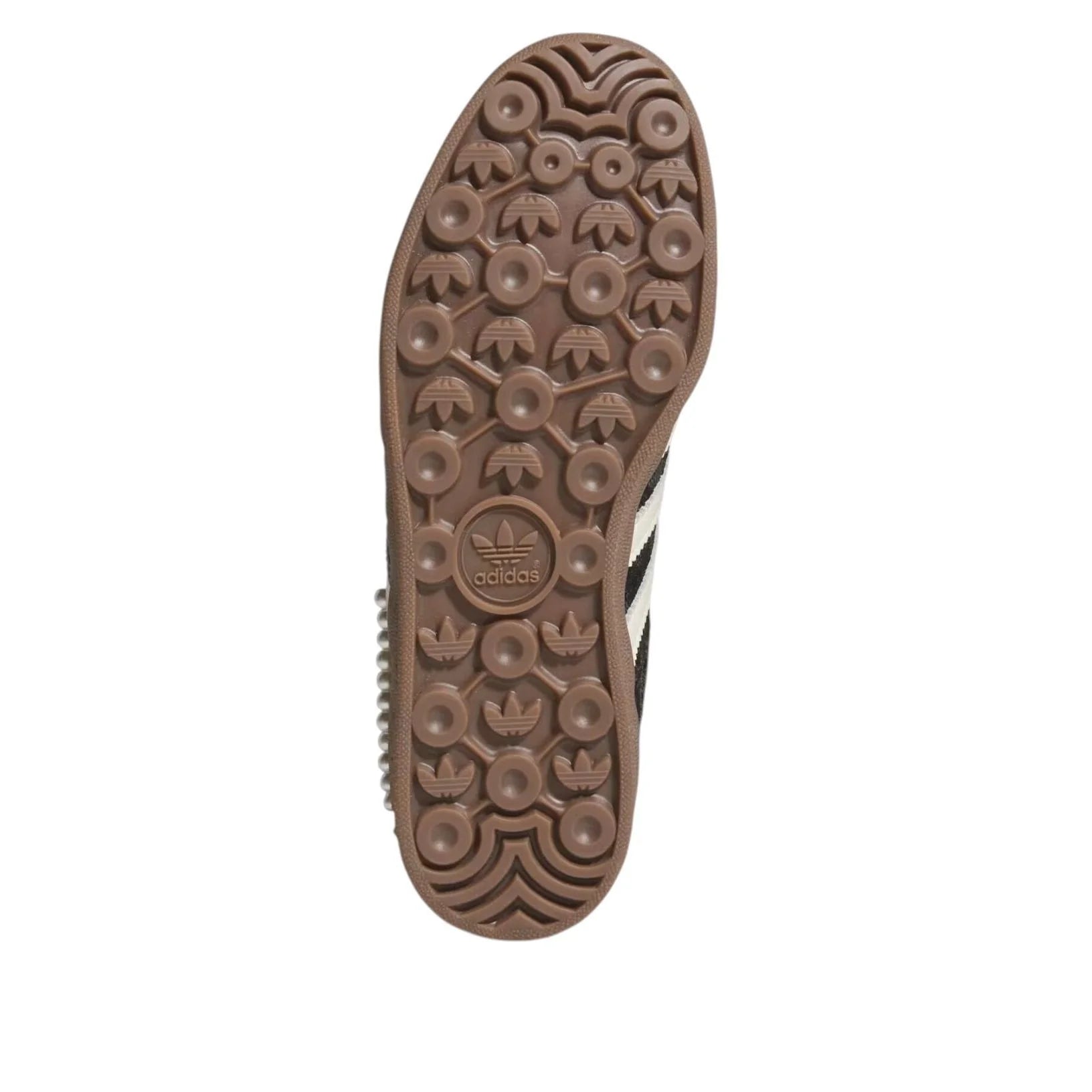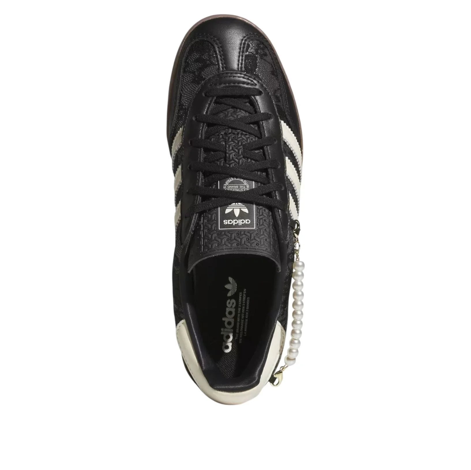 The women’s adidas Gazelle Indoor “Black Pearl” refreshes the iconic model with a deep black upper, creamy off-white 3-Stripes, and a rich dark brown gum sole that echoes its athletic heritage. Decorative lace details and a removable pearl bracelet on the lateral side bring a contemporary, elegant twist to this classic silhouette.