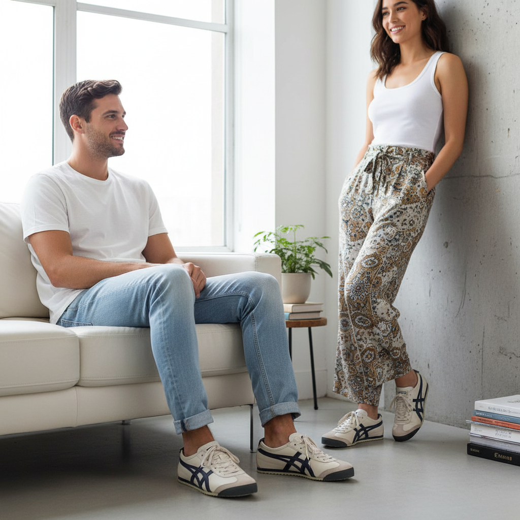 The Onitsuka Tiger MEXICO 66 brings a fresh spin to a timeless classic. It’s an ideal pick for anyone looking to capture the spirit of the ’68 Olympics or simply elevate their daily outfits with a retro vibe. Featuring a leather upper, suede overlays, and signature serrated eyestays, the design nods to its heritage, while updated contrast labels and side stripes add a contemporary touch. Finished with a two-tone rubber sole and traditional tread, this sneaker blends style with everyday functionality.